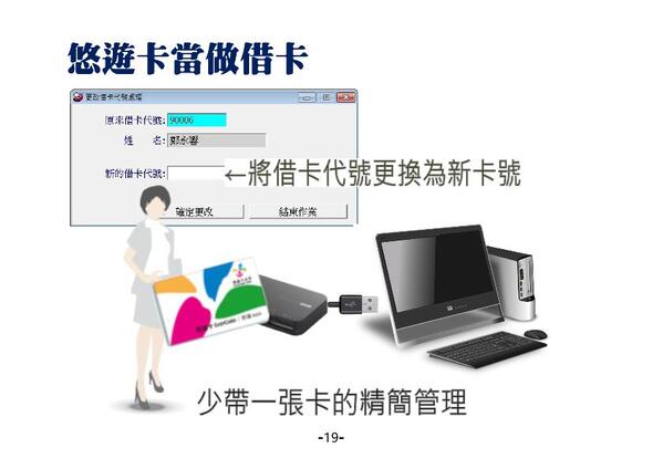 掌握電腦化圖書館管理的五項要點。- ● 悠遊卡當做借用卡的管理
