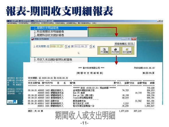 可列出在某一段時間內,特定部門的特定科目之收支情況。